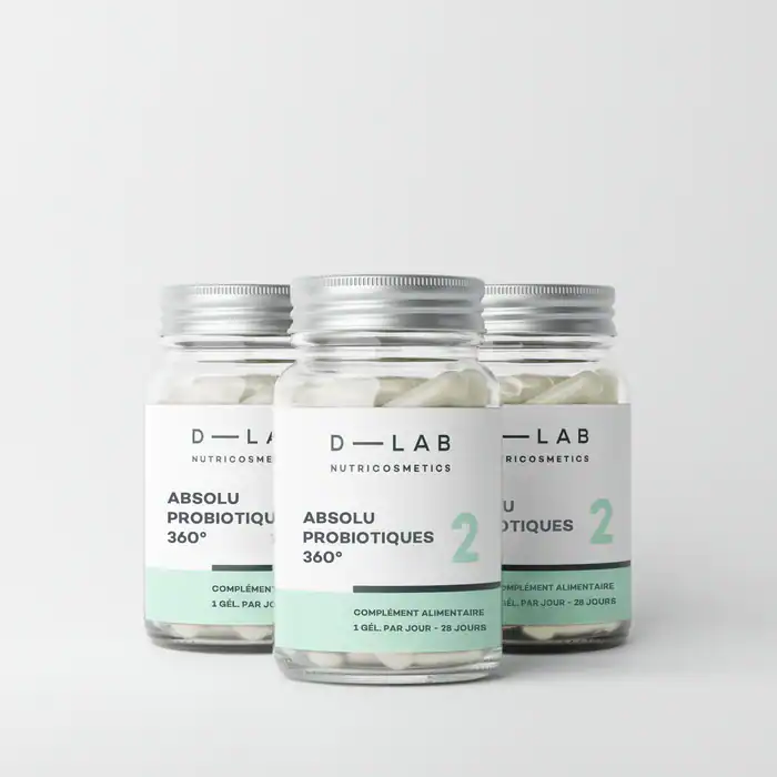 L’Absolu Probiotiques 360° soutient l’axe intestin-peau en modulant les réponses inflammatoires et en restaurant l’intégrité cutanée.