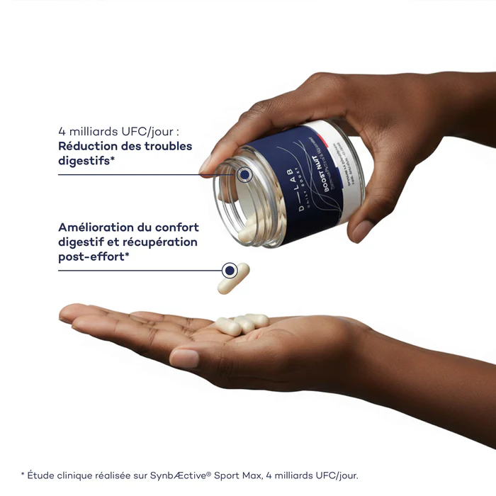 Le complexe SynbÆctive® Sport Max, composé de quatre souches de probiotiques, agit sur la réduction de l’ inflammation systémique et du stress oxydatif. Selon une étude clinique menée à 4 milliards UFC/jour, ce complexe permet une diminution des troubles digestifs et une amélioration du confort après l’effort.