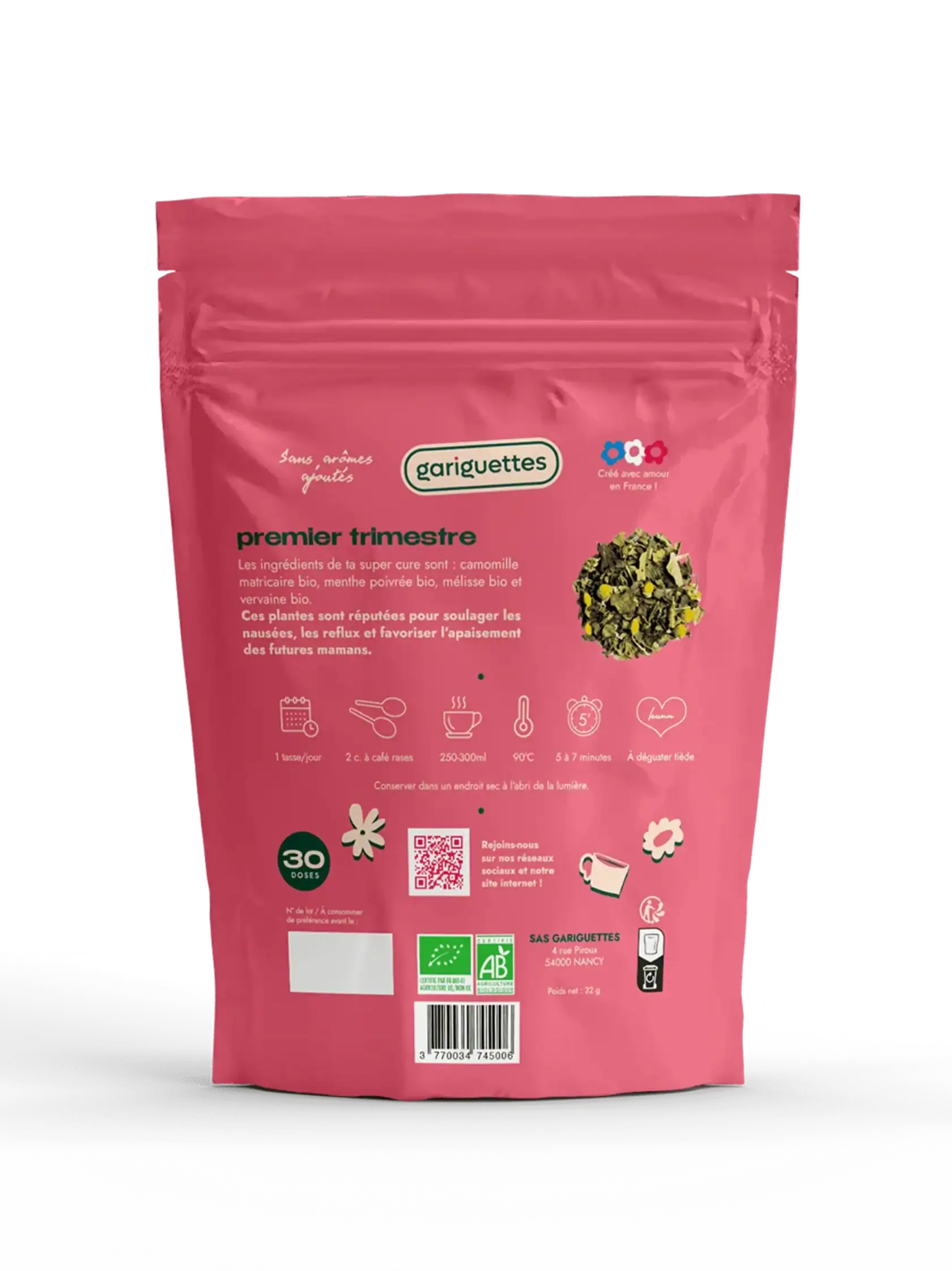 Notre tisane pour le premier trimestre de grossesse est conçue pour accompagner et soulager les femmes enceintes.
