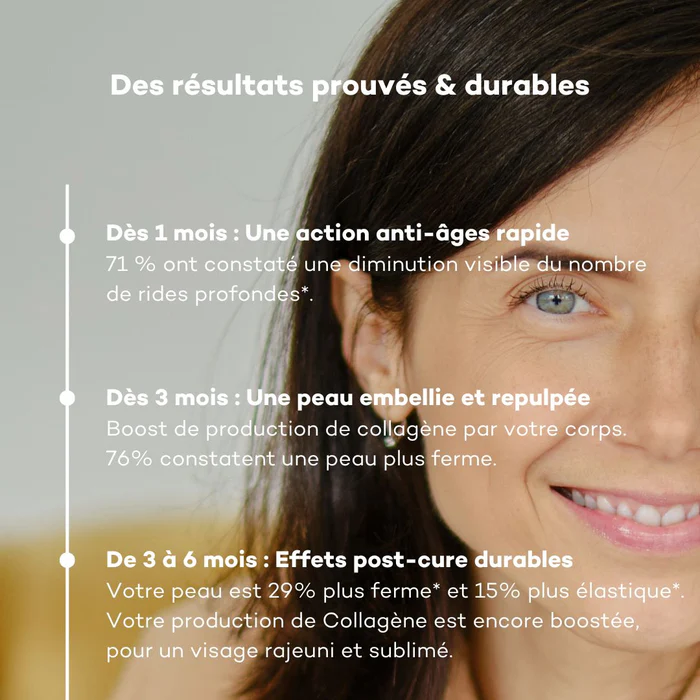 Le Collagène Collactive® a démontré par étude clinique une réduction significative du nombre de rides profondes dès 28 jours de cure.