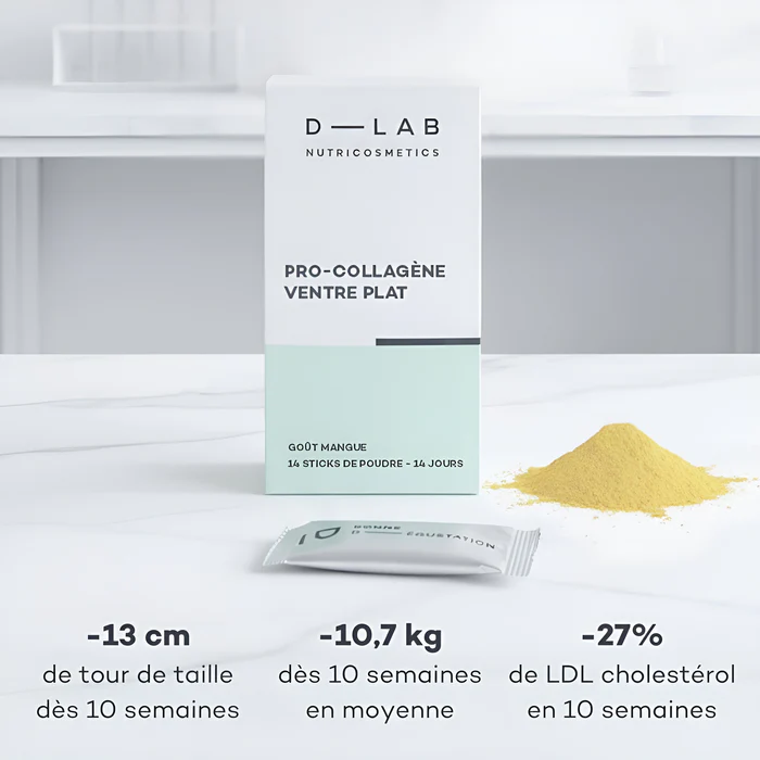 Notre Pro-Collagène Ventre Plat Mangue associe deux actifs stars cliniquement prouvés :